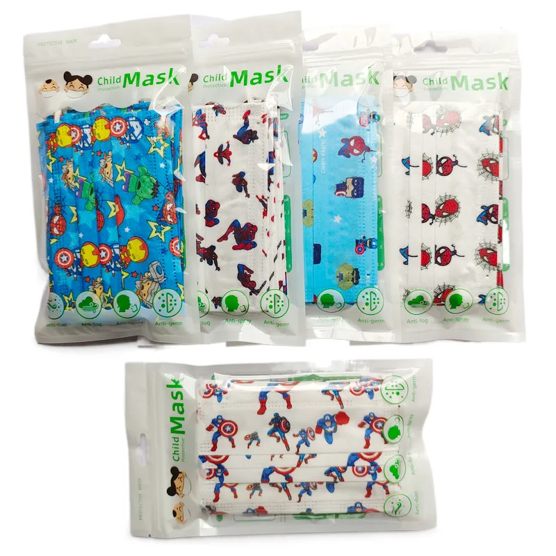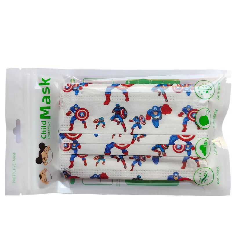 Kids Disposable Face Mask Industrial 3Ply Ear Loop Mouth Face Cover Captain America Hero Fashion Printing Maske Mascarillas New