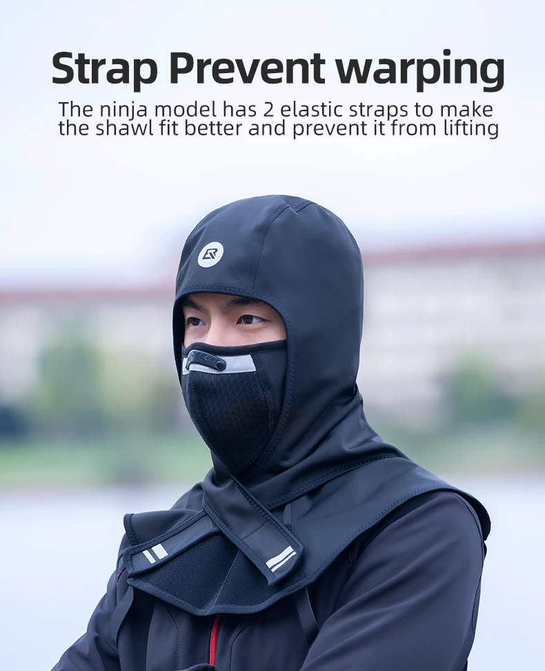 The ninja model has 2 elastic straps to make the shawl fit better and prevent it from lifting.